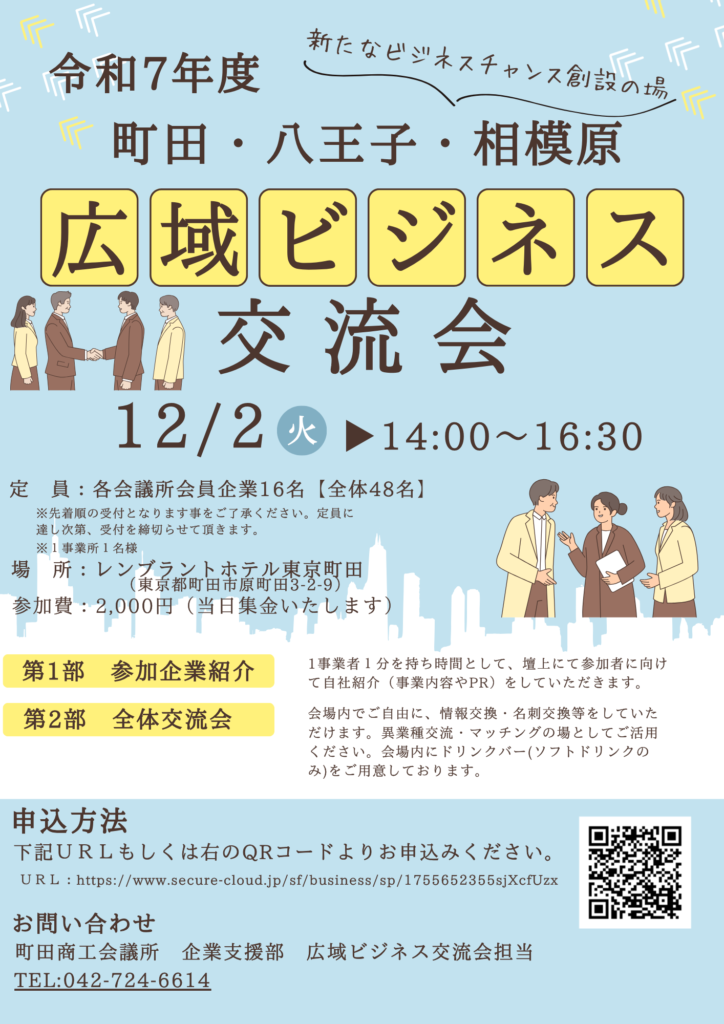• 12月2日開催~町田、相模原、八王子でビジネスチャンスを~「広域ビジネス交流会」参加者募集!