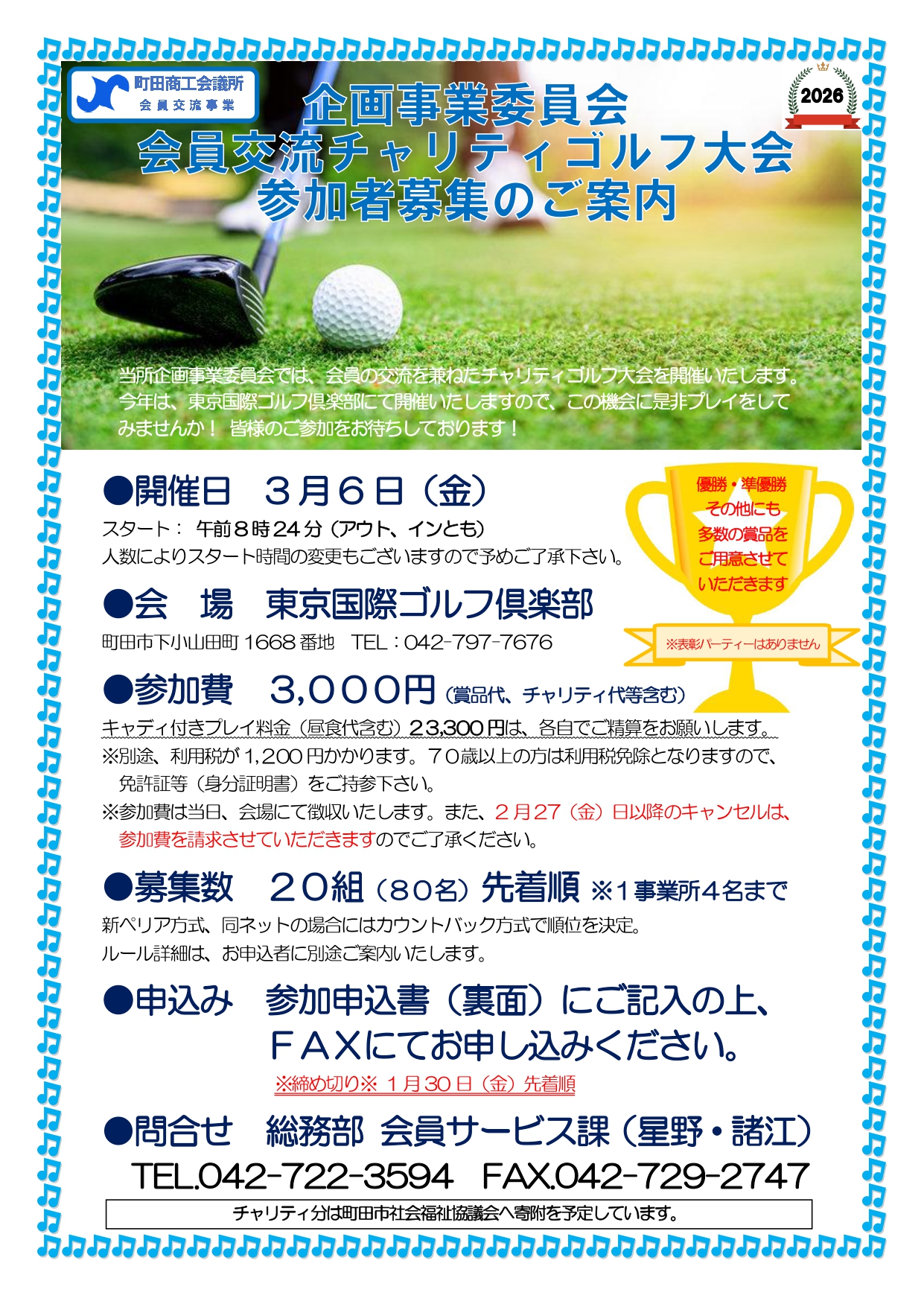• 3月6日開催「会員交流チャリティゴルフ大会」のご案内