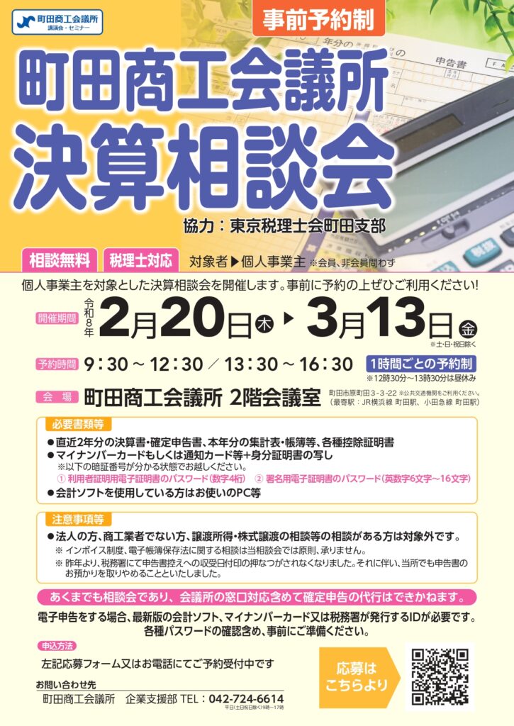 • <事前予約制> 令和7年分 決算相談会のご案内